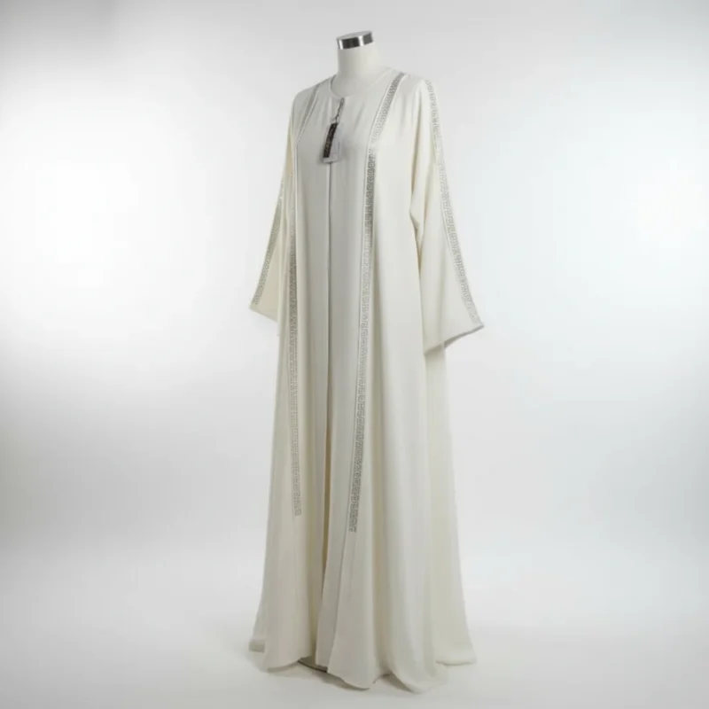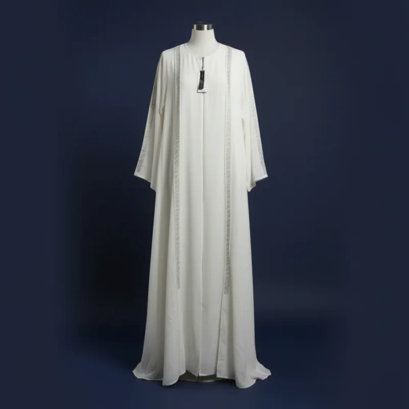 عباية أعراس بيضاء فخمة بقماش تركي ناعم وتطريز