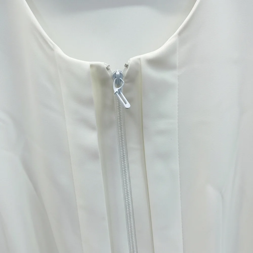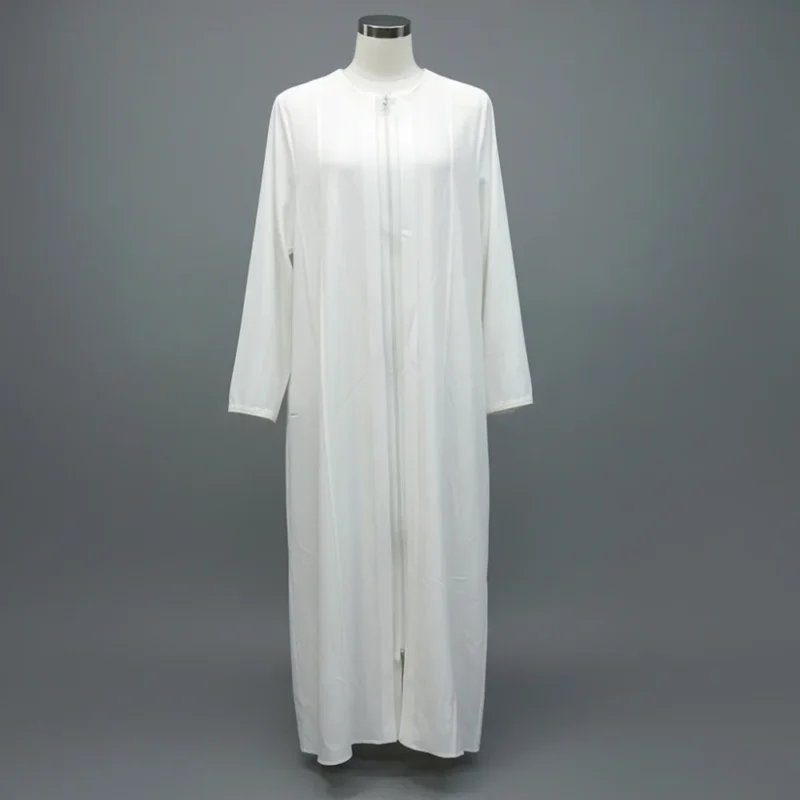 عباية بيضاء بسيطة بسحاب أمامي كامل لسهولة الارتداء.