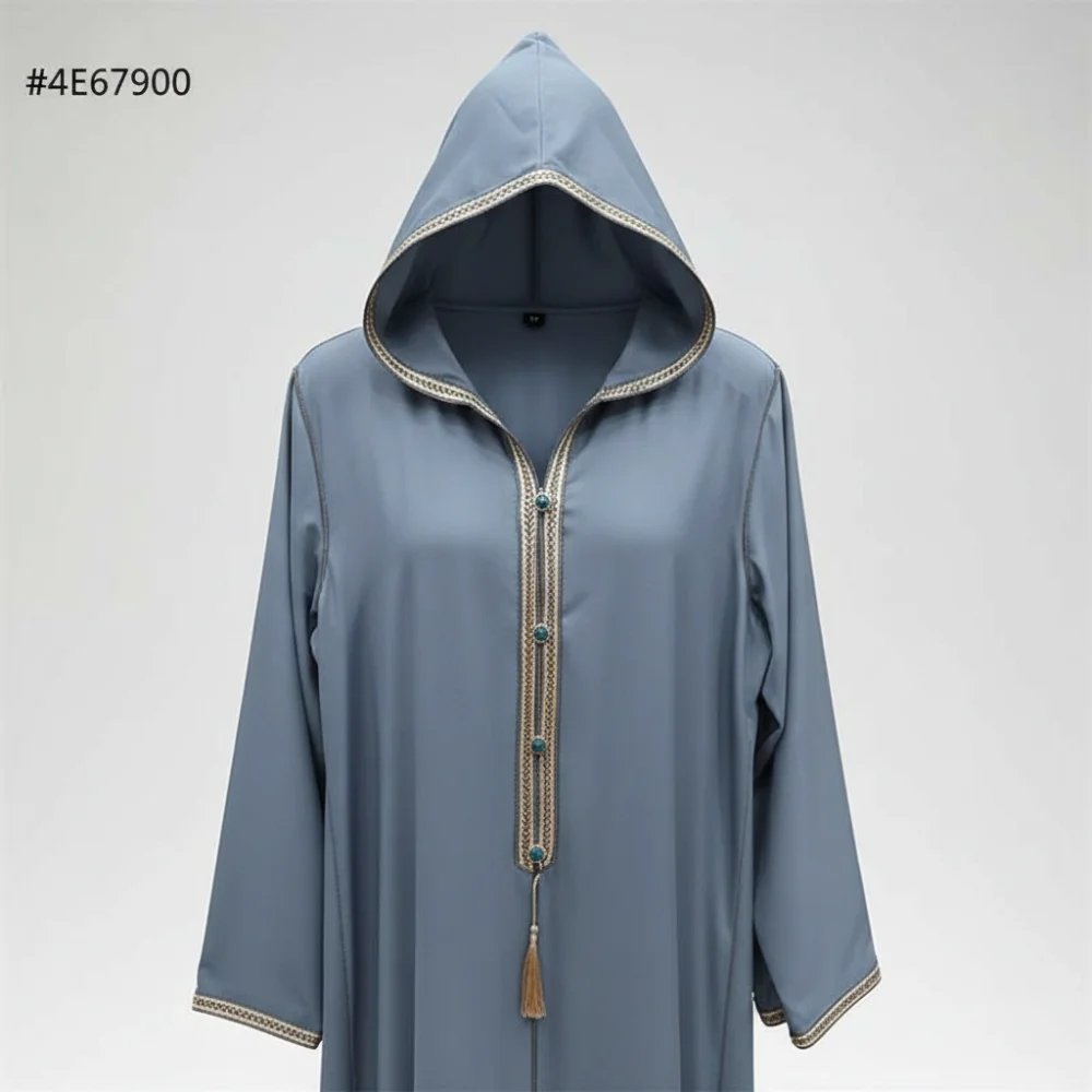 • تصميم مغربي أصيل: قصة واسعة مع “قب” (غطاء رأس) يضيف طابعاً تقليدياً محبباً وعملياً.