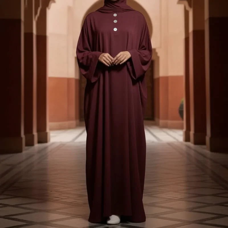 • القماش: برادا / سوبر برادا، خفيف بانسيابية واضحة ولمعة راقية.