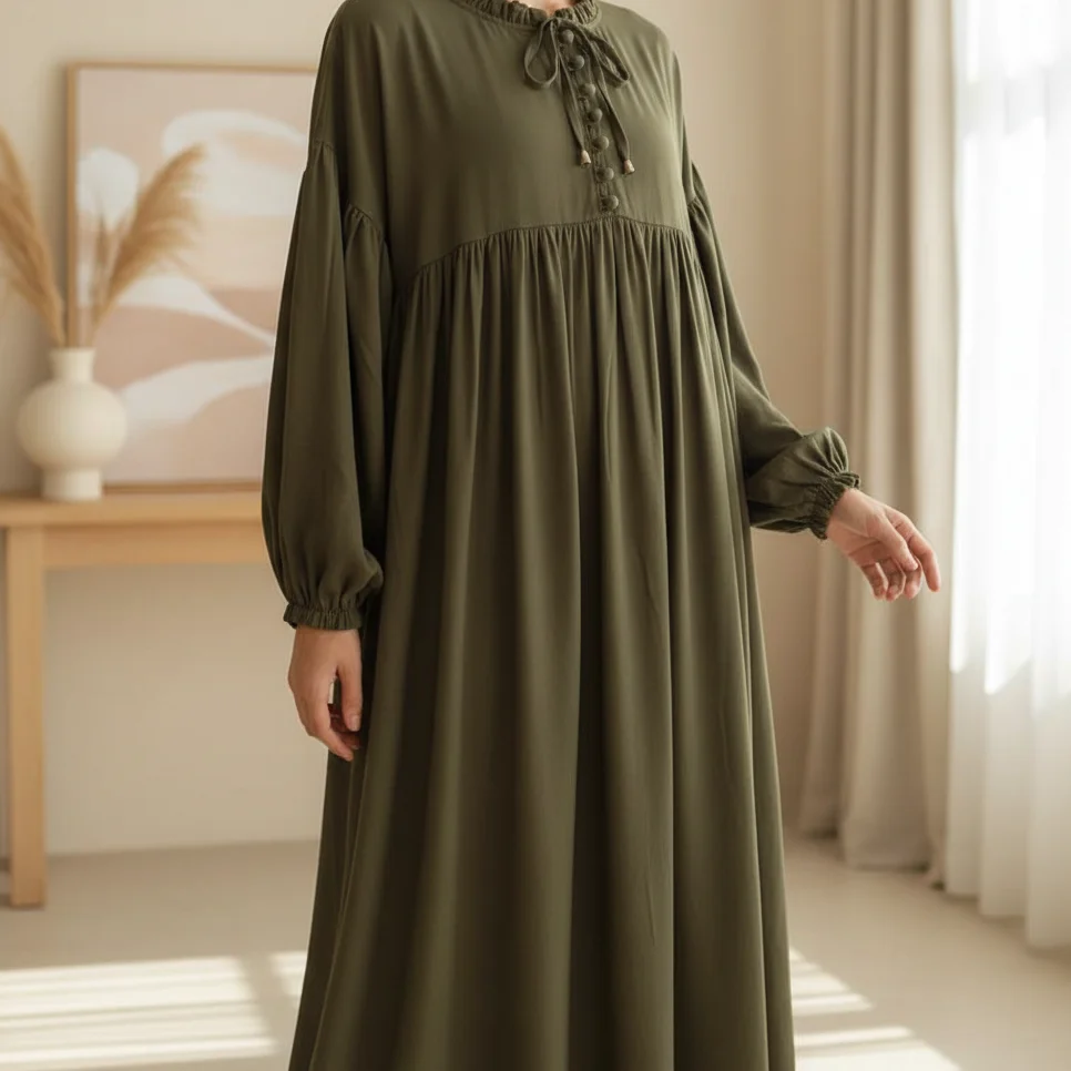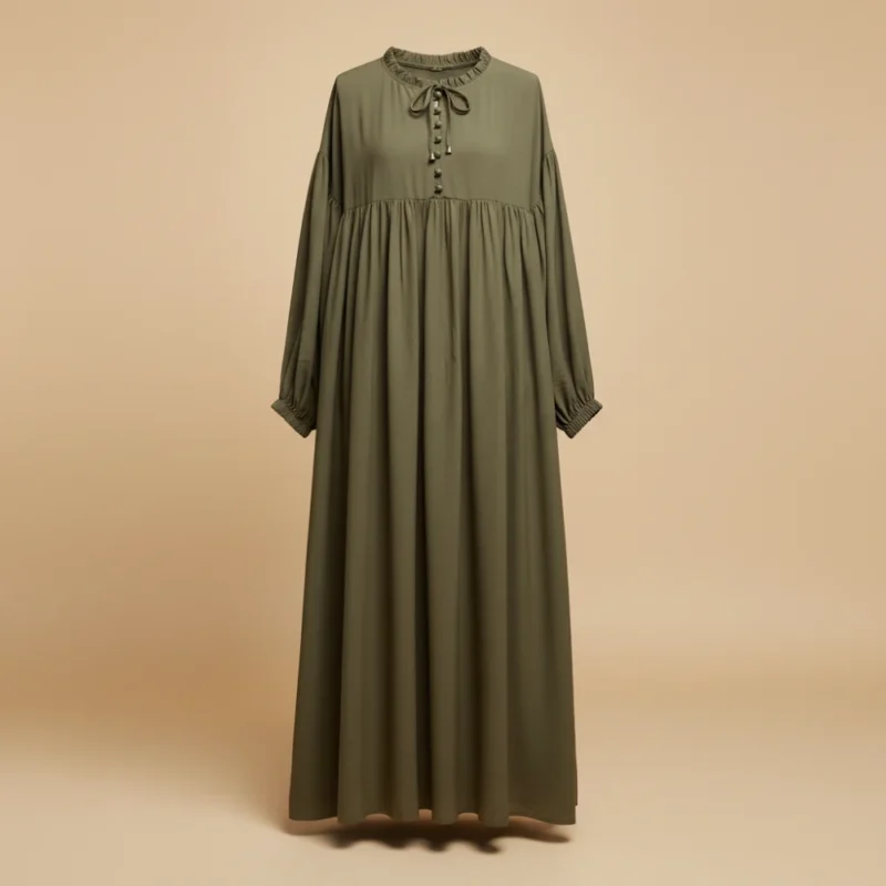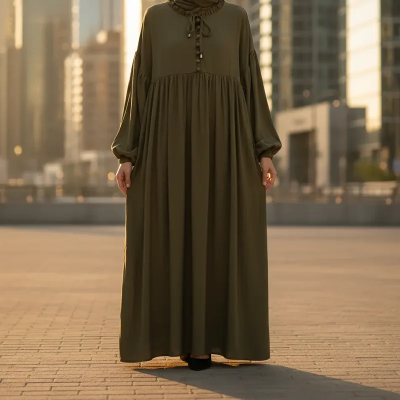 - أكمام مريحة (Manches Bouffantes): أكمام واسعة تنتهي بمطاط مرن (أستيك)، مما يسهل الوضوء ويمنحك حرية في الحركة.